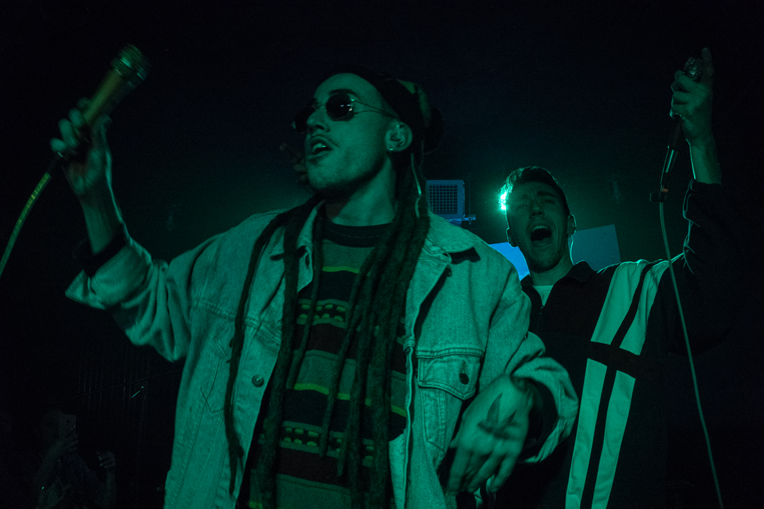 Cráneo (izq.) y Lasser (der.) durante su show en Quito el pasado 1 de diciembre de 2018. Fotos de Martín González para Radio COCOA.