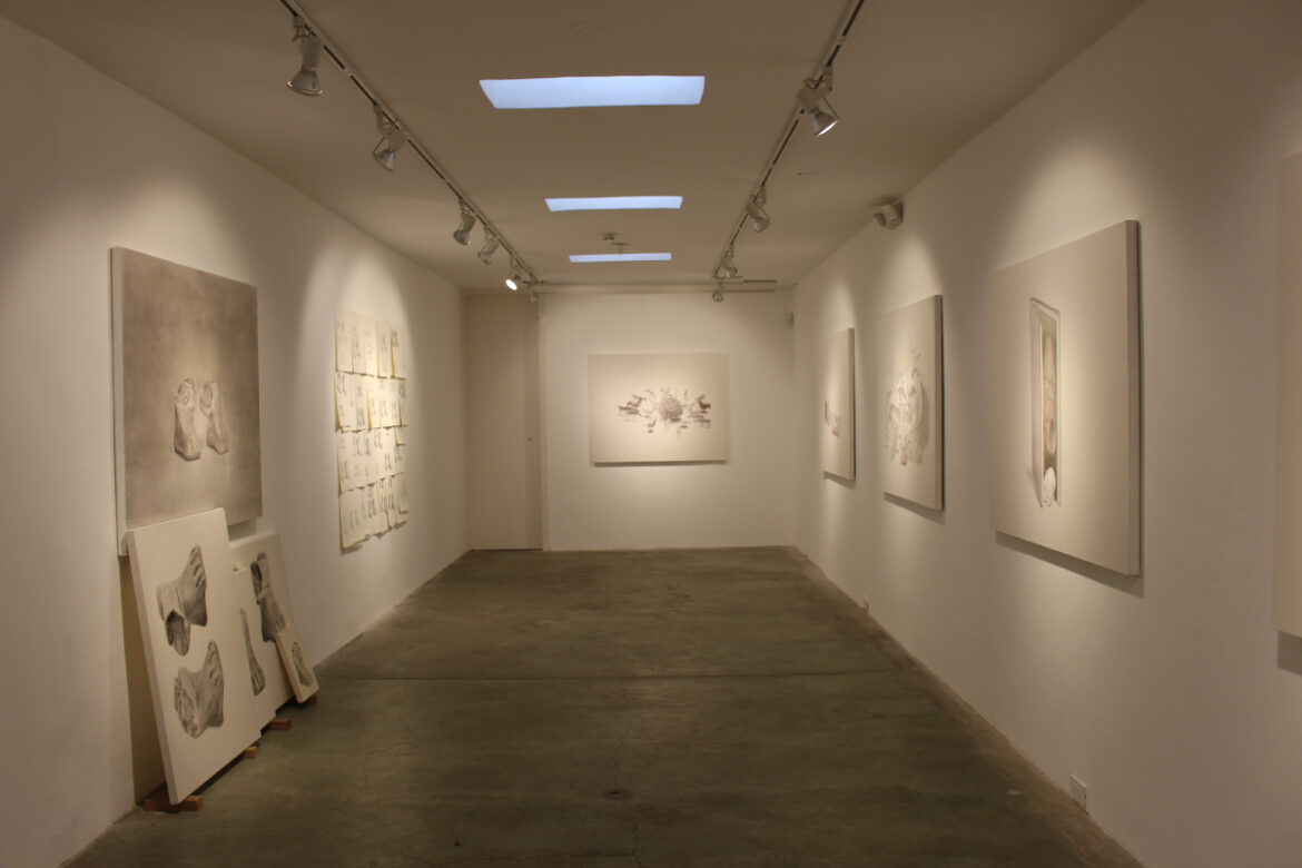 “Quería transmitir este contexto de pandemia en el que salimos muy esporádicamente. Si es que voy a una galería, me gustaría ver algo que solo puedo ver ahí. La pintura creo que permite eso: el acercarse y el alejarse”, asegura Cevallos.